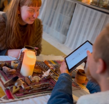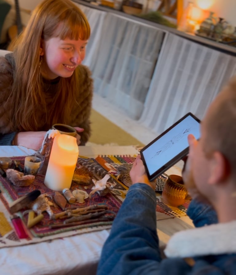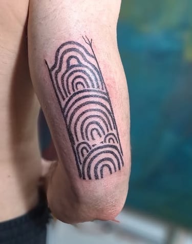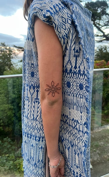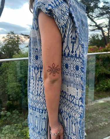With an acupuncturist father and an artist mother, my path to ceremonial tattoos feels like a natural convergence. I approach each tattoo as a deeply collaborative ritual, working alongside you to set clear intentions and zone into the feeling we want the tattoo to embody. Together, we craft a design that truly resonates with your spirit. Each blessing weaves wisdom of ancestral medicine, sacred geometry, and intuitively channeled motifs. Each mark, hand-poked with care, transforms into a personal talisman and a permanent anchor for your journey.
